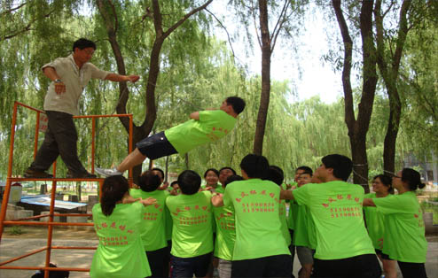 过 程:所有团队成员在不借助任何工具的情况下,激发团队巨大力量,全 体逃生到四米的高墙上。